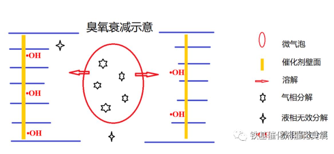 “催化劑填料”這一名詞,在化工行業有見,但不常用。催化劑的功能是加速反應,屬化學學科概念;填料的功能是為傳質和反應提供場所,屬化工學科概念。在催化臭氧化過程中, •OH產生于臭氧在