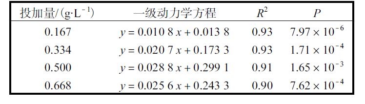 表1 不同催化劑投加量對模擬草酸廢水降解動力學的影響