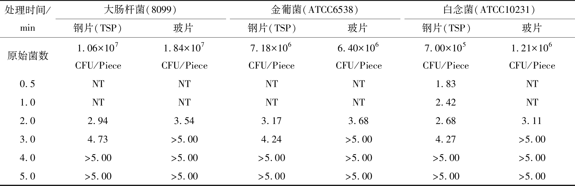 表2 臭氧水處理不同時間的滅菌效果比較†