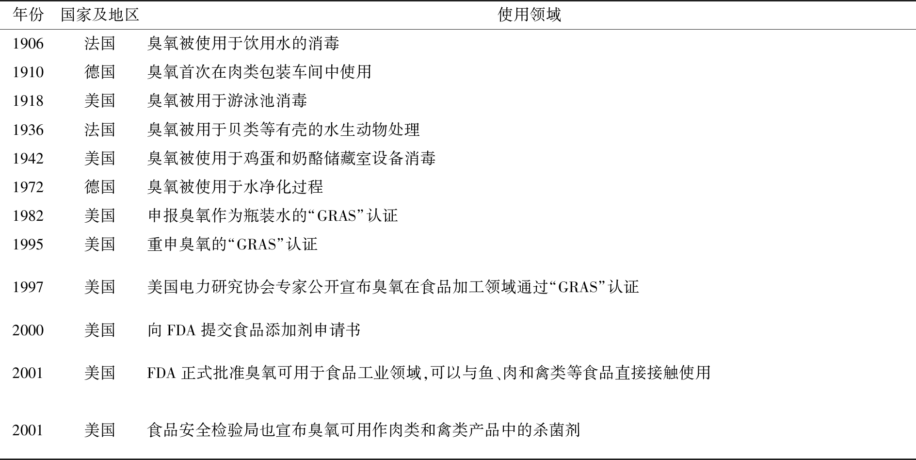 表1 臭氧在水處理和食品領域應用簡史[1]