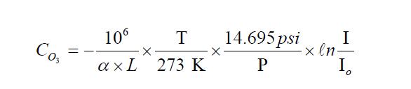 下面所示的Beer-Lambert方程,根據(jù)光強(qiáng)度的比值計(jì)算臭氧的濃度。
